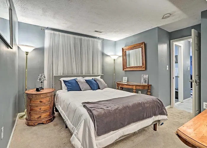 The 1-bedroom Lower-Level Woodbridge Apt With Patio - 32 Mi To Dc! Venue is less than about 10 minutes by car from Church on the Move. This accommodation has a kitchen provided with amenities, such as a microwave, a refrigerator, and kitchenware for self-catering.